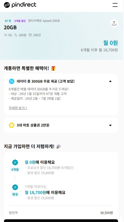 핀다이렉트SK망 120기가+5MPS 1100원, 11기가+2기가+3MPS 550원 KT망 20기가+50기가 0원 알뜰폰/뽐뿌 작성자 정보 관리자 쪽지보내기 메일보내기 자기소개 아이디로 검색 전체게시물 쪽지보내기 메일보내기 자기소개 아이디로 검색 전체게시물 작성 작성일 2026.01.16 19:09 컨텐츠 정보 810 조회 0 추천 0 비추천 목록 본문 무한 통신의 시작 Zhttps://www.yogeum.com/stkt341 0 추천 0 비추천 SNS 공유 관련자료 링크 https://www.yogeum.com/stkt341 227 회 연결 이전 핀다이렉트KT 20기가(2월~6개월간 50기가제공) + 바로유심 2만원 상품권 110원 총 70기가 작성일 2026.01.24 00:19 다음 알뜰폰) SK 알뜰망 100기가 5MPS 3300원 , 11기가+2GB+3MPS 2200원 작성일 2026.01.05 22:00 댓글 0 등록된 댓글이 없습니다. 로그인한 회원만 댓글 등록이 가능합니다. 목록